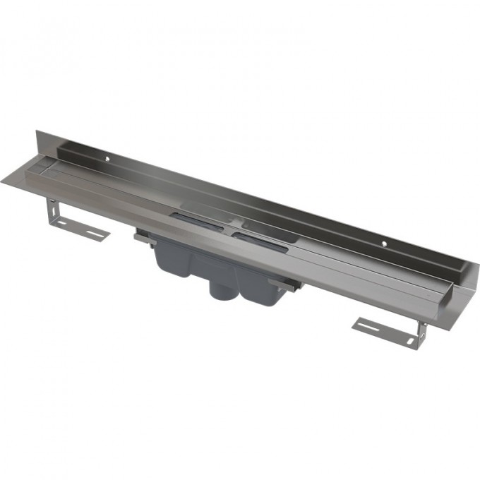Водоотводящий желоб предназначен для установки у стены с цельной решеткой или решеткой под кладку плитки. Нержавеющий порог желоба образует визуальный переход между краем желоба и вставленной решеткой. Вода втекает в желоб только между краями желоба и решетки. Желоб может быть установлен у стены душевой поверхности. И крепиться не только к полу ну и к стене.