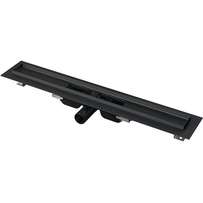 Водоотводящий желоб ALCAPLAST с порогами для перфорированной решетки, черный матовый, низкий, горизонтальный сток APZ101BLACK-300